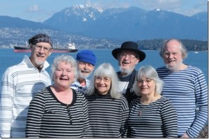 The Lazy Jacks Shanty Crew, based in the home port of Vancouver, British Columbia, is an “unprofessional” (amateur) group of singers and musicians who enjoy singing sea shanties and sea-themed songs together. We are also members of the Vancouver Folk Song Society, and inspired by the “original” shanty crew of the VFSS, carry on the tradition of singing together, mostly shanties and mostly acapella. While the line-up for the Lazy Jacks has changed over the years, our enthusiasm and enjoyment remain constant.